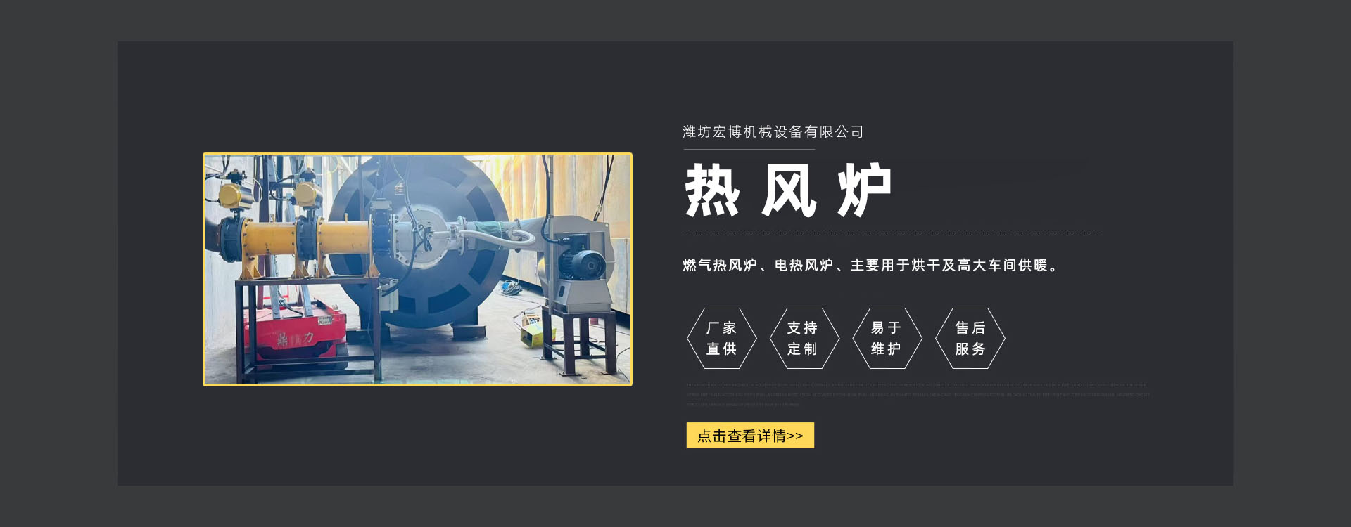 濰坊宏博機械設備有限公司是從事熱風爐、烘干設備、供暖設備的研發(fā)、設計、制造和服務于一體的實體企業(yè)。長期以來,企業(yè)以市場的發(fā)展和客戶的需求為導向,集多年的生產技術與經(jīng)驗為一體,不斷開發(fā)和優(yōu)良產品。